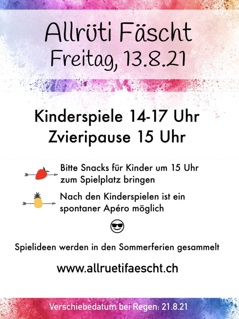 Weitere Infos zum Allrüti Fäscht folgen in den Sommerferien.